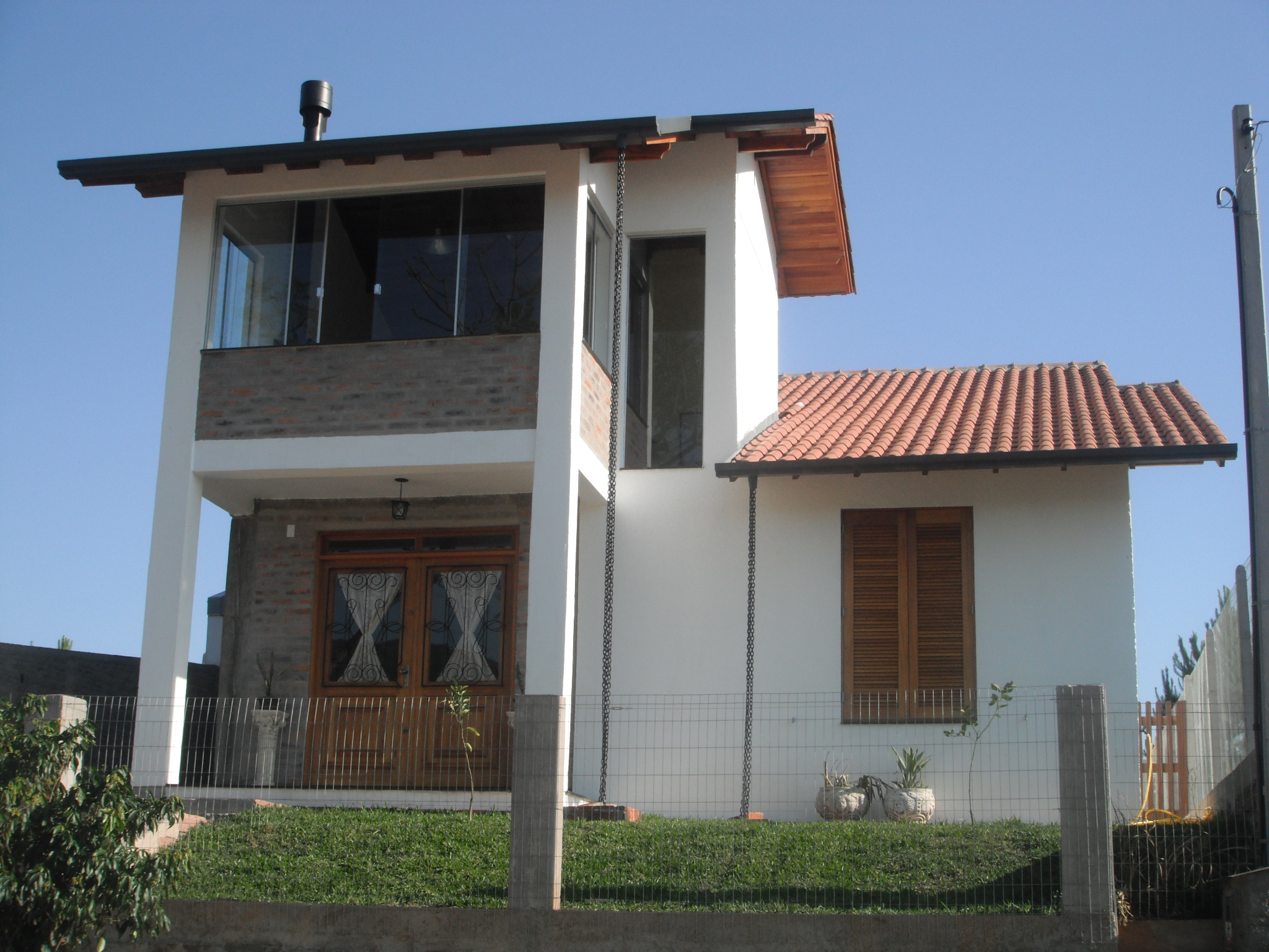 Nesta obra a ideia de trazer materiais mais rústicos como a madeira e o tijolo de demolição fizeram parte da proposta desde o início do projeto. Janelas altas e estreitas e uma porta de entrada com 2 folhas dão um estilo mais colonial a esta casa.